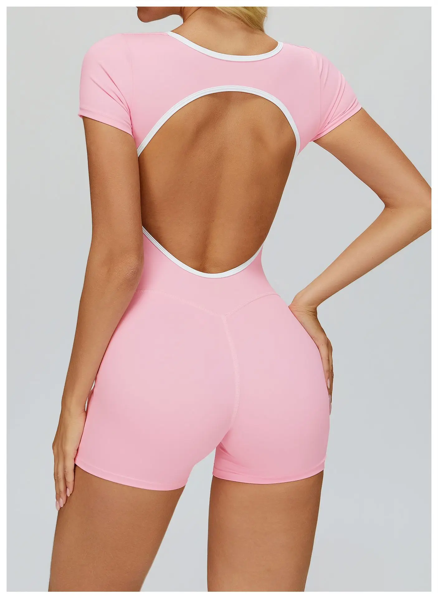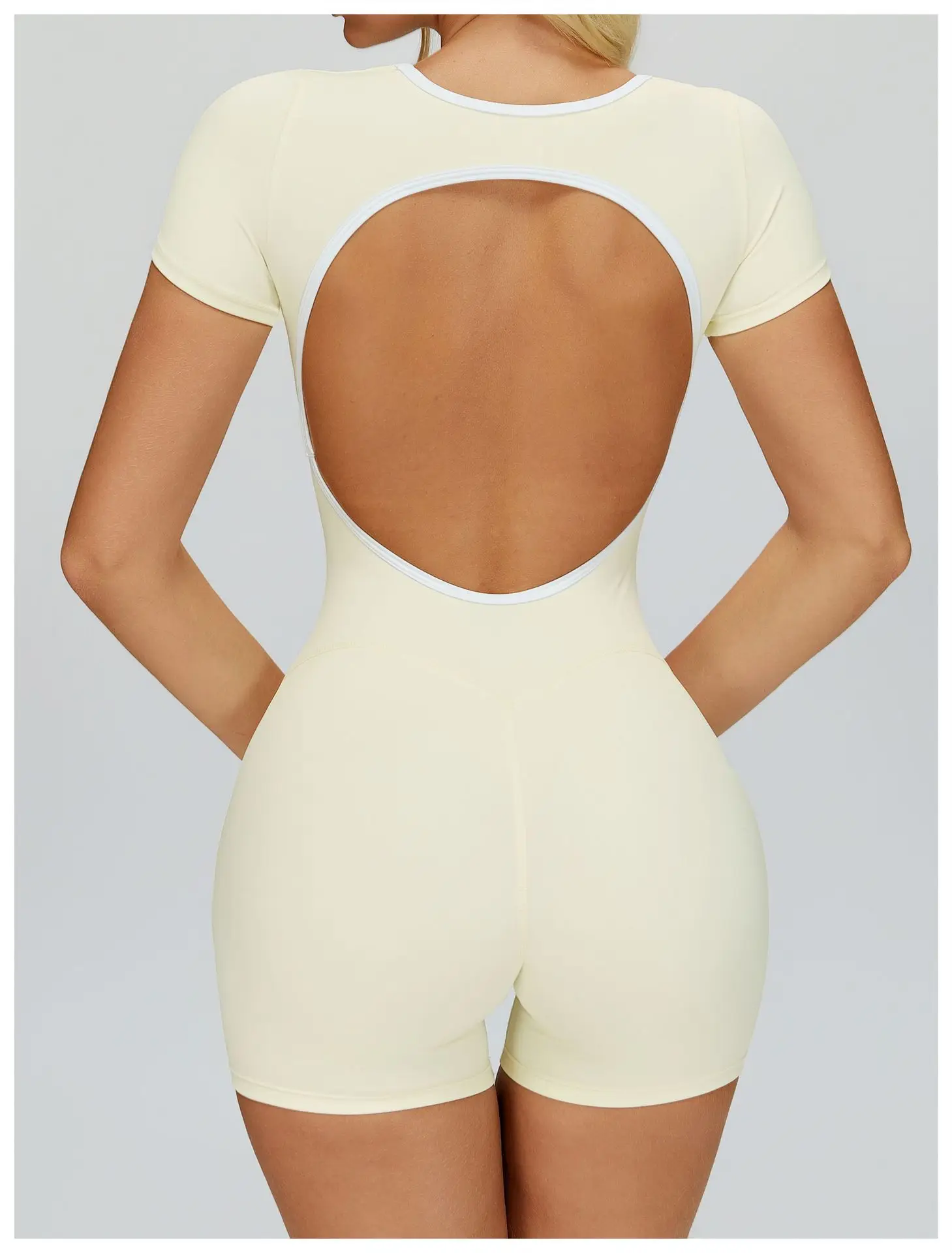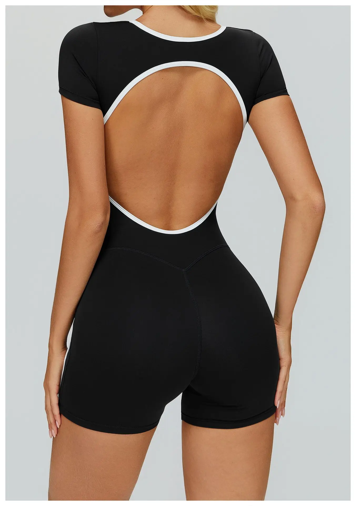 Open Back Gym Bodysuit Short Sleeve